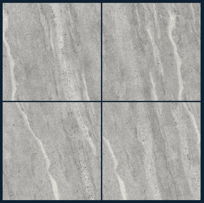 Thẩm mỹ: Tông xám trung tính, hạt nhẹ giúp che bụi tốt; cạnh cắt rectified lát phẳng, ron 1,5–2 mm tinh gọn.