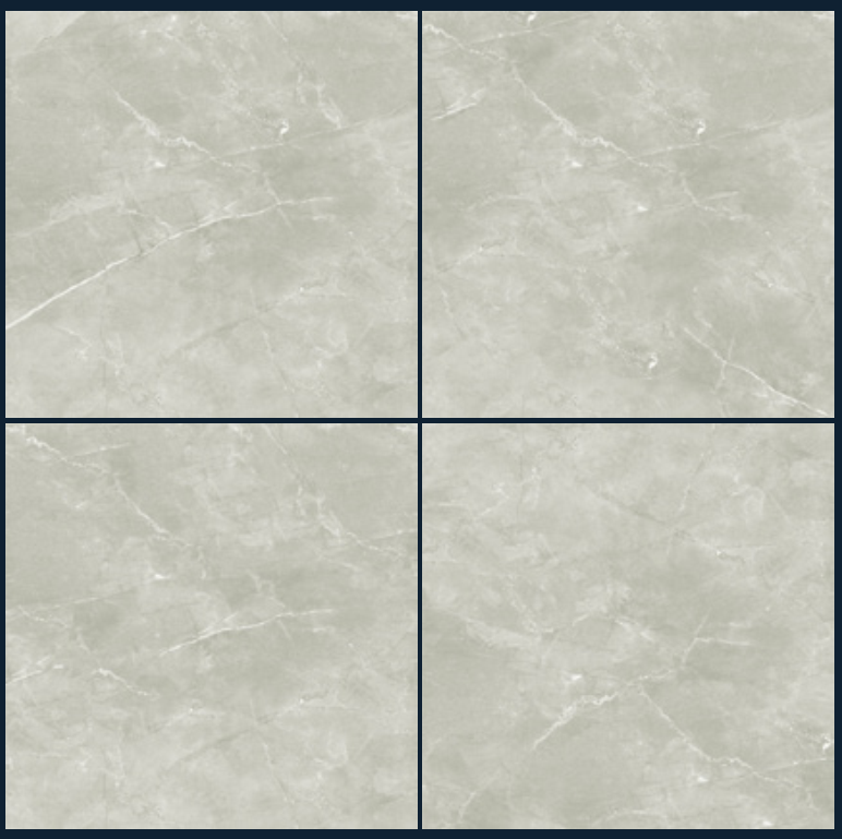 Bề mặt/hiệu ứng: Men bóng gương (glossy); họa tiết marble xám nhạt với gân trắng mềm; phản chiếu ánh sáng tốt, lát ron nhỏ cho mặt sàn liền lạc.