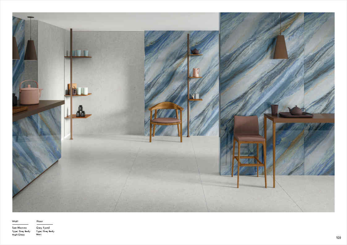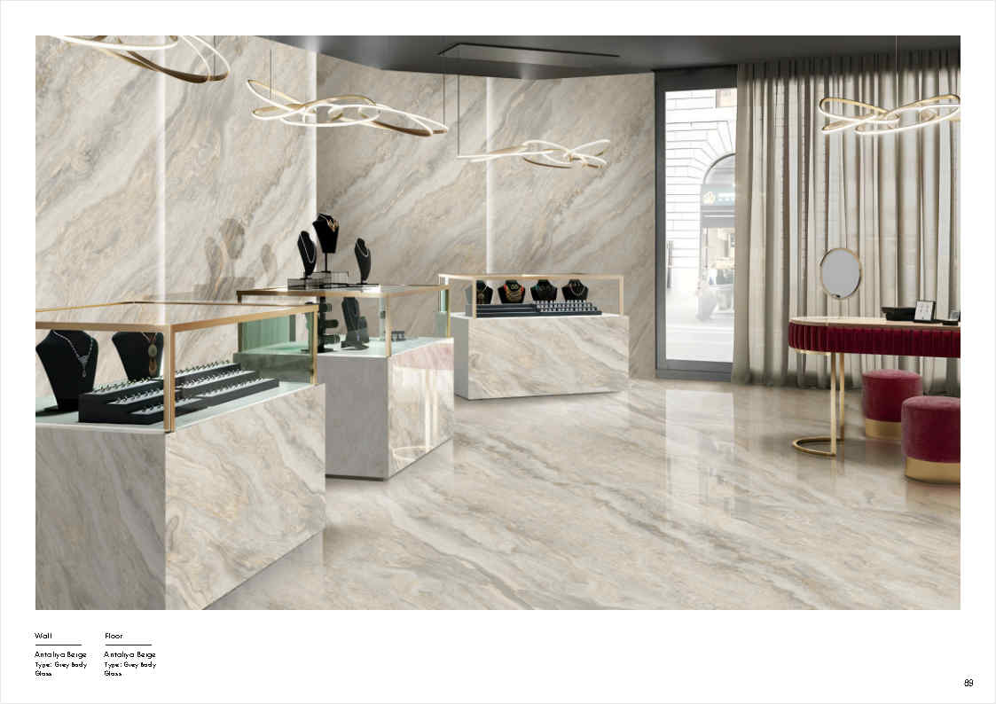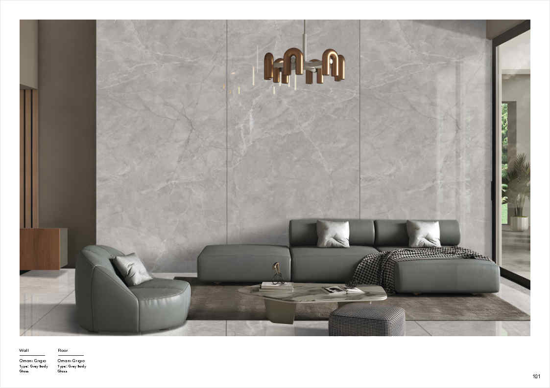 Bề mặt Gloss giúp mảng tường hoặc nền tạo hiệu ứng phản chiếu nhẹ, làm không gian trông rộng hơn, sáng hơn, đặc biệt hợp các thiết kế cần “độ luxury” rõ ràng như sảnh, showroom, boutique, căn hộ mẫu. Khi lên khổ lớn, hệ vân của Art – Grey cho cảm giác liền mạch và “đắt mắt”, phù hợp làm mảng ốp điểm nhấn hoặc các khu vực cần tạo dấu ấn thị giác.