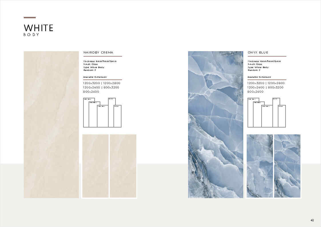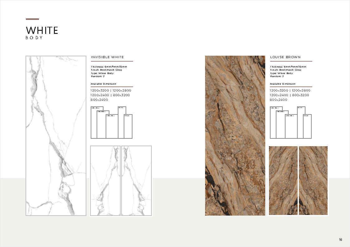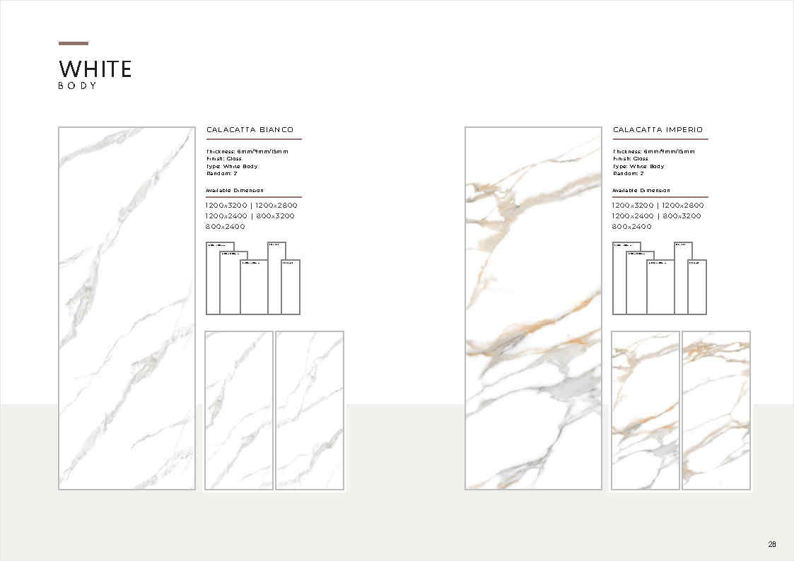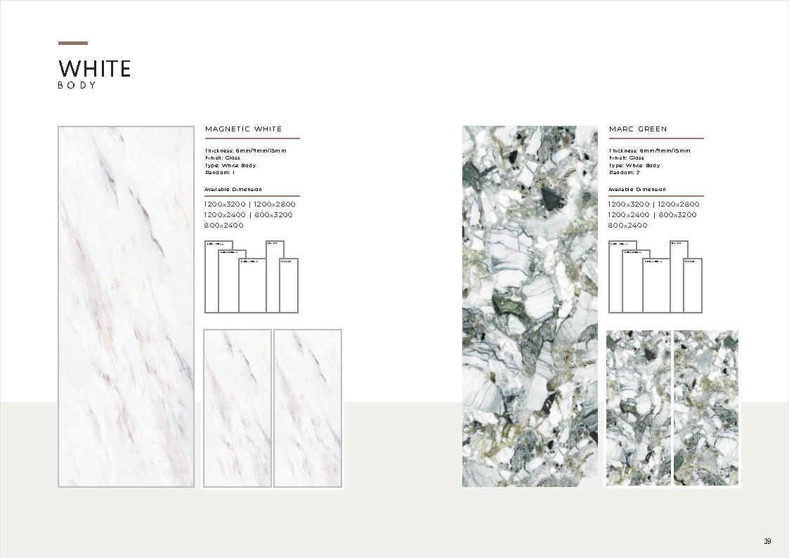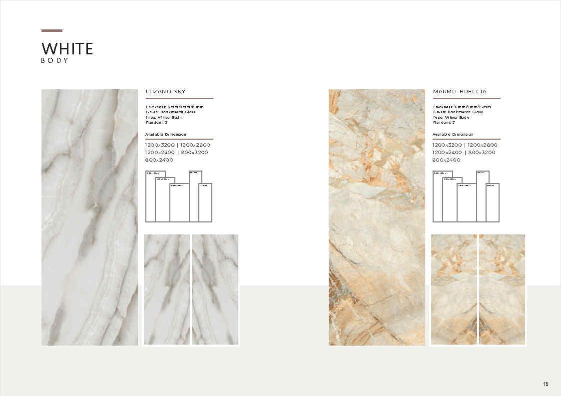 | Ứng dụng | Ốp tường, lát nền khu vực khô ráo; sảnh, quầy lễ tân, showroom, khu trưng bày, căn hộ mẫu (ưu tiên khu khô, hạn chế khu vực dễ trơn trượt nếu lát nền) |