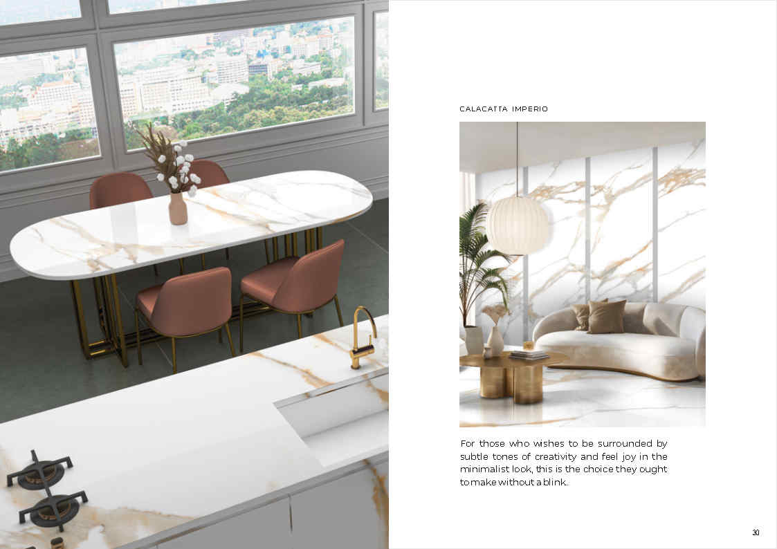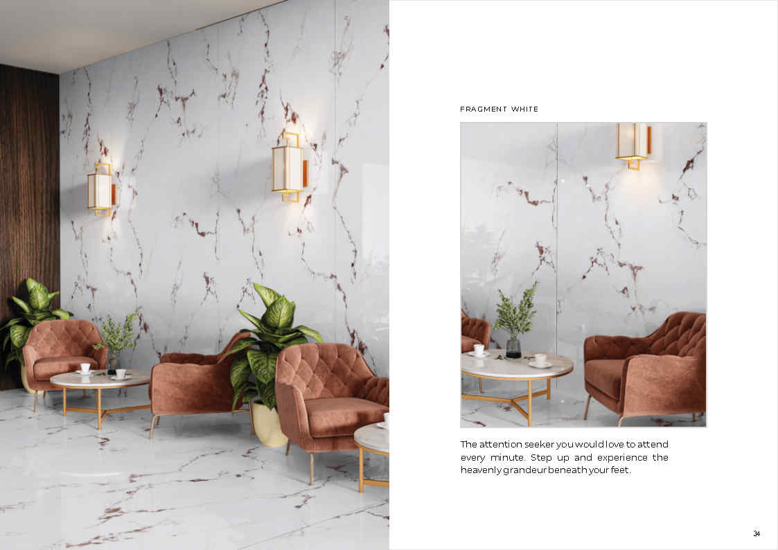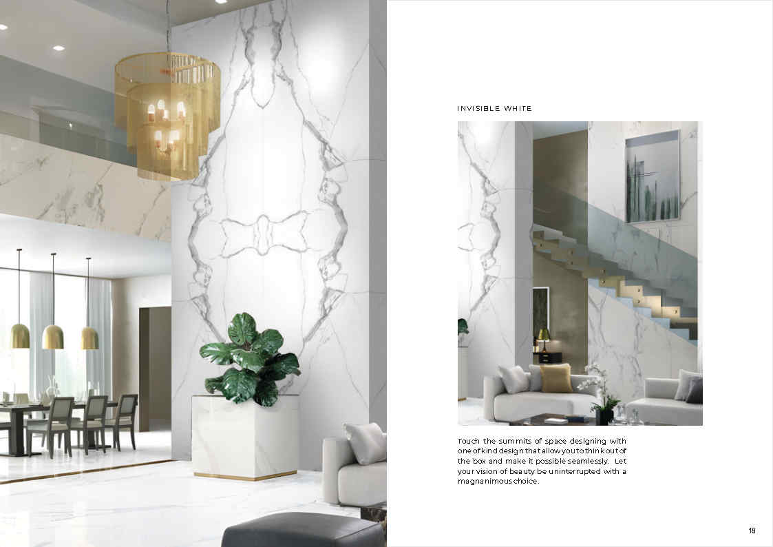 Khác với các dòng trắng trơn dễ “phẳng”, Art – White tạo hiệu ứng đá tự nhiên sang trọng nhờ hệ vân chuyển sắc mượt và độ bóng phản chiếu ánh sáng. Khi ốp tường sảnh, quầy lễ tân hoặc không gian showroom, bộ sưu tập cho cảm giác cao cấp và bắt mắt, đặc biệt phù hợp các thiết kế cần “độ sáng” nhưng vẫn có điểm nhấn.