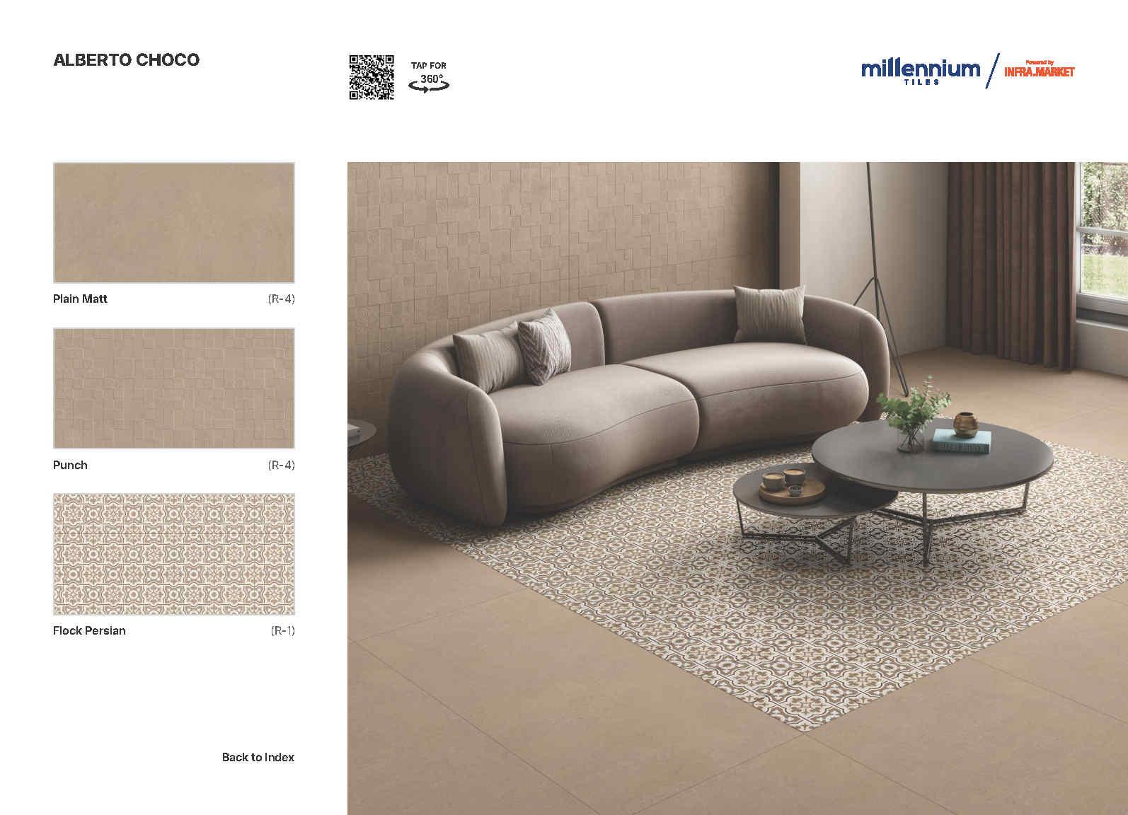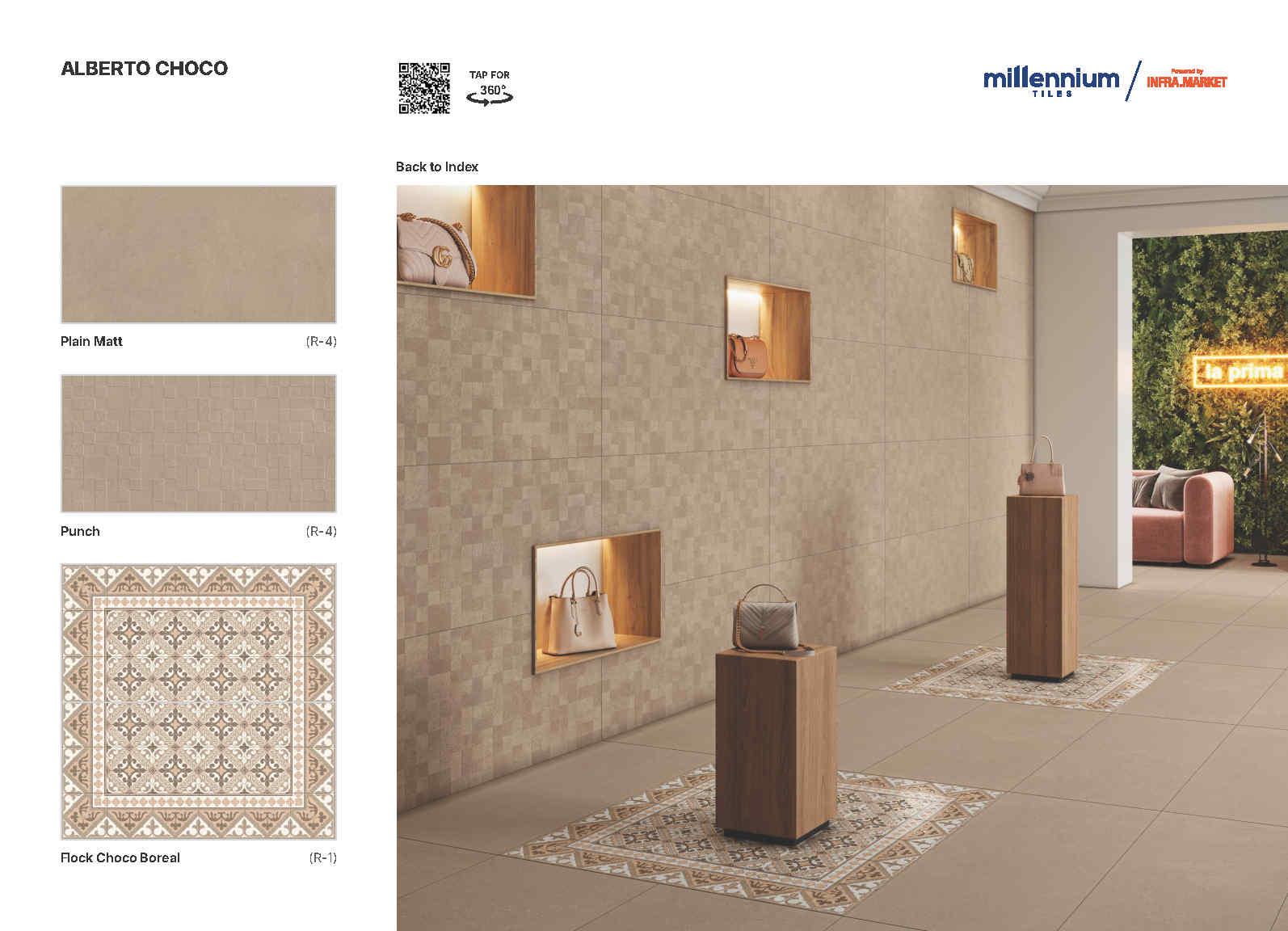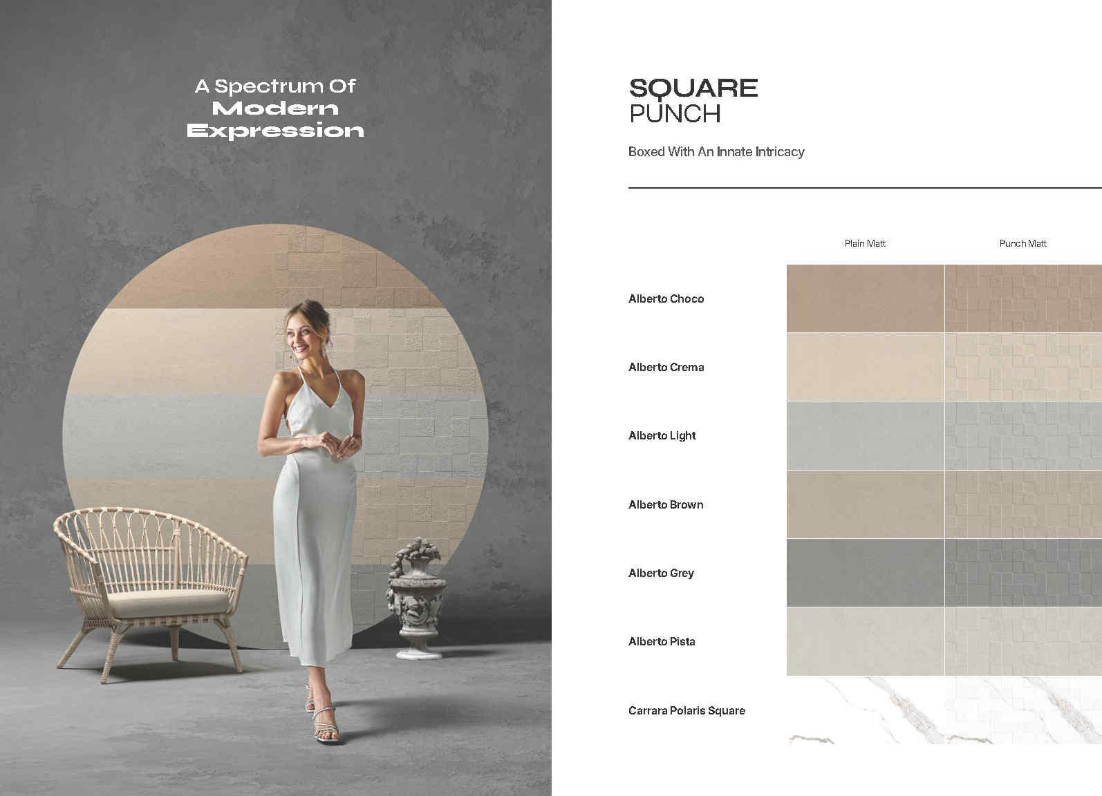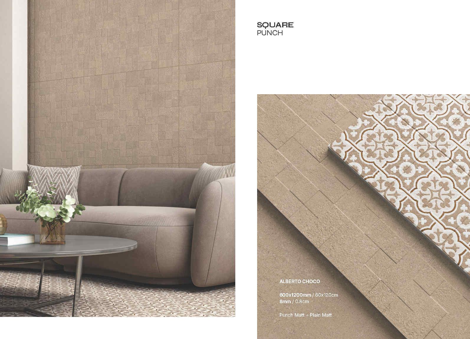 Bộ sưu tập đi kèm gallery và phối cảnh để bạn nhìn rõ độ nhấn ô vuông của Punch, sắc độ của 2 tông Alberto Choco/Alberto Crema, và cách phối Plain – Punch – Decor (Flock) khi lên không gian thực tế. Hãy kéo xuống xem trọn bộ gallery để chọn đúng màu và kiểu bề mặt phù hợp với công trình.