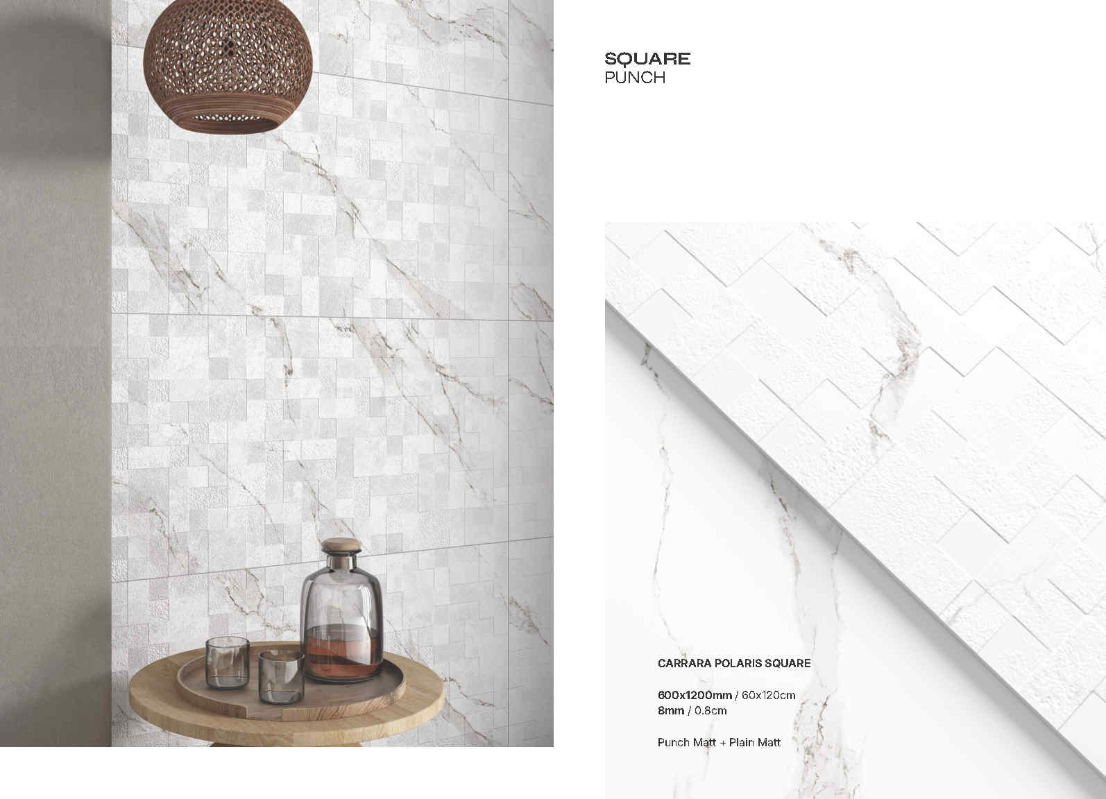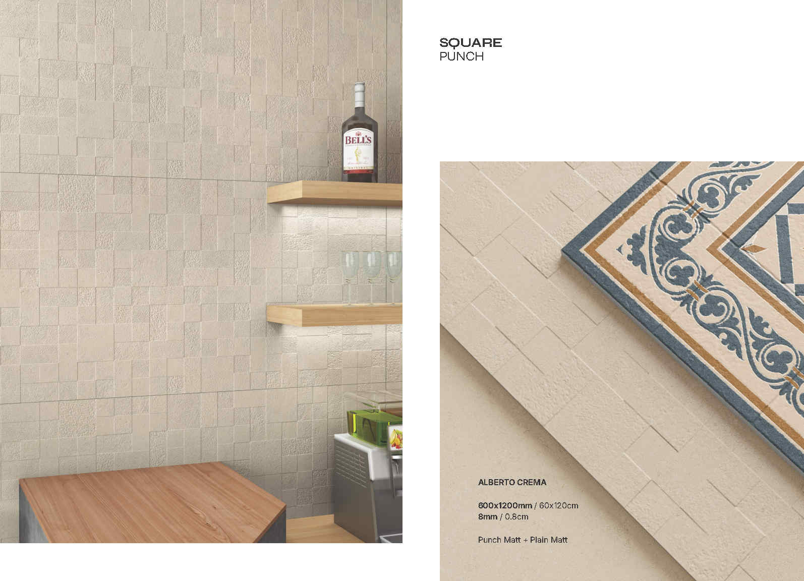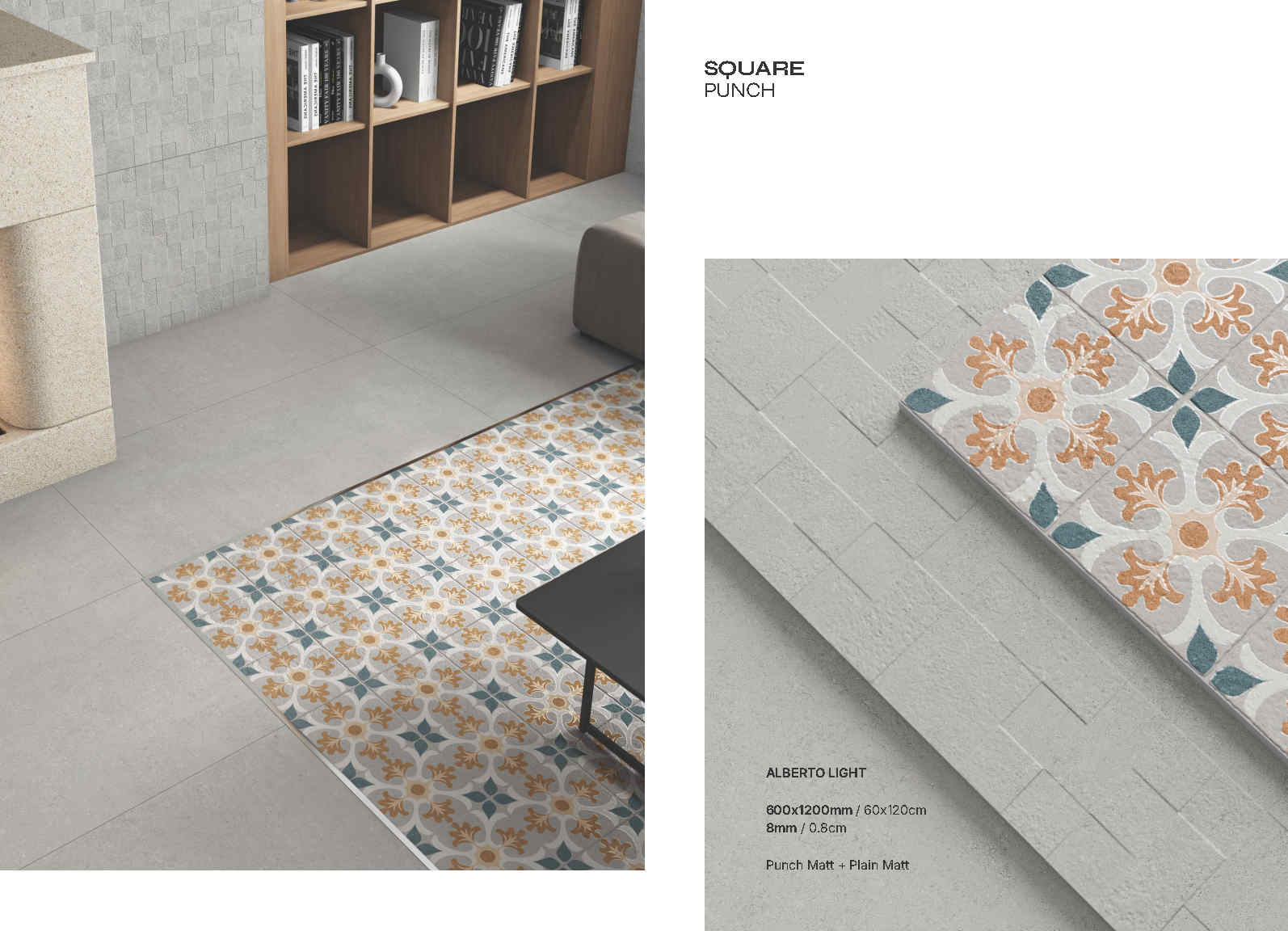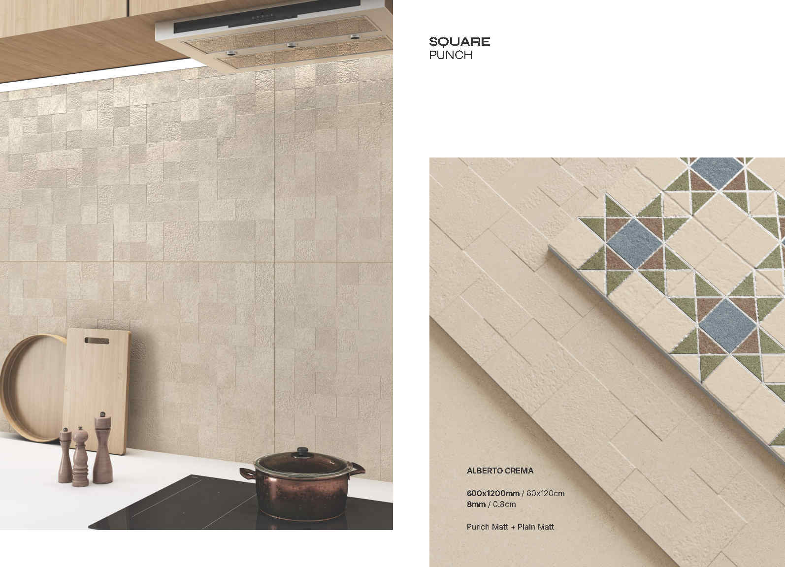 Square Punch (FTP5DS) là bộ sưu tập gạch porcelain khổ 600×1200 mm với hiệu ứng bề mặt dạng ô vuông nhỏ, nhìn gần sẽ thấy có độ nhấn nhẹ, giúp mảng tường hoặc nền bớt đơn điệu mà vẫn giữ cảm giác gọn và sạch. Bộ sưu tập dùng bề mặt mờ (Matt) nên ánh nhìn dịu, ít chói, hợp không gian hiện đại và các khu vực cần cảm giác ấm áp, dễ chịu. Bộ sưu tập có 2 kiểu bề mặt chính: