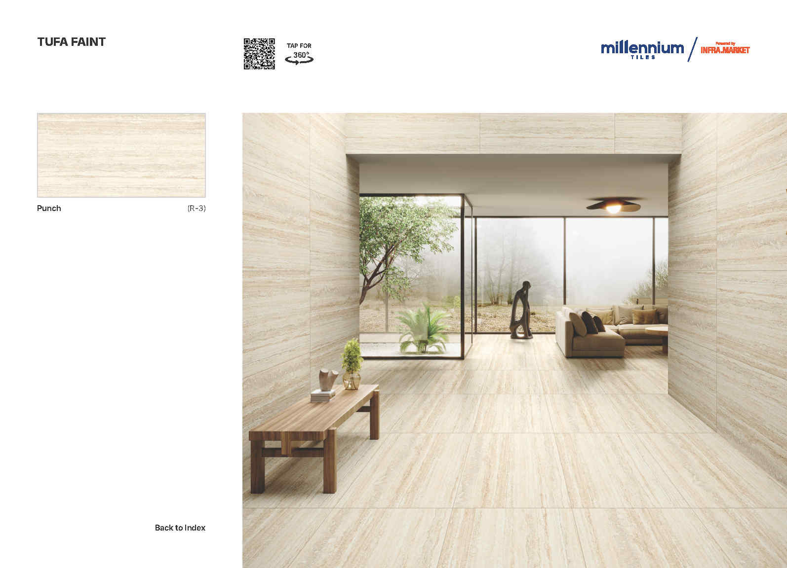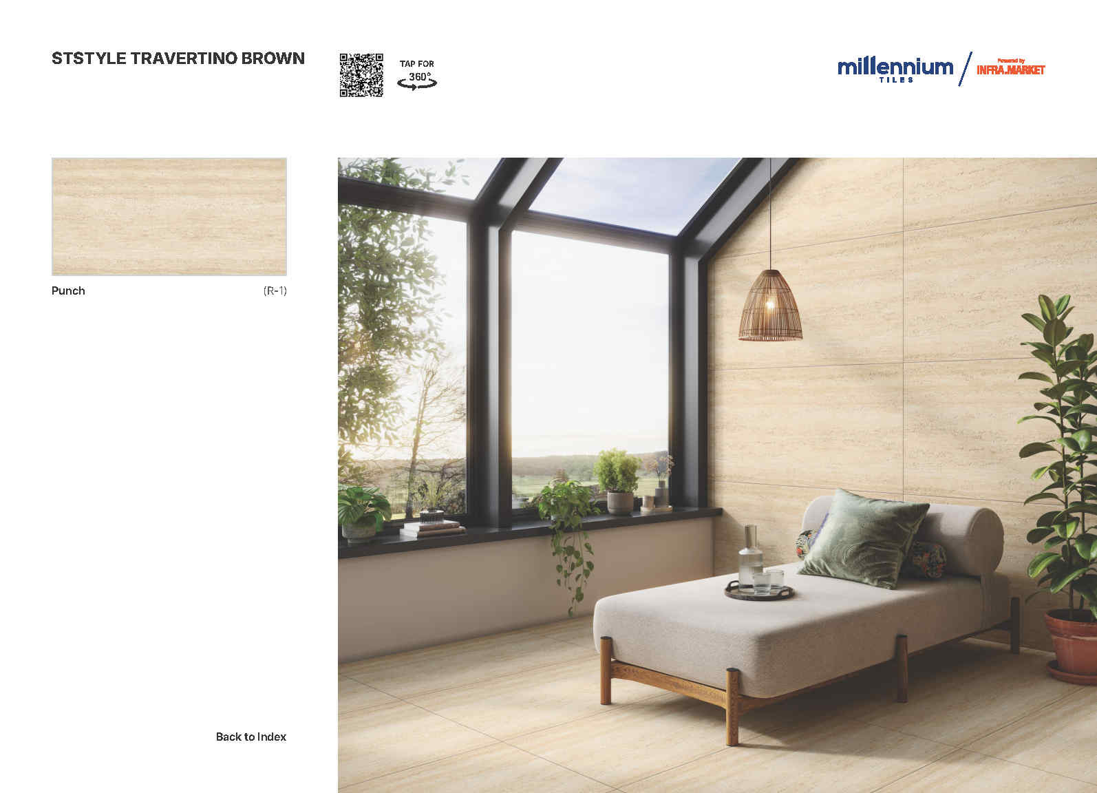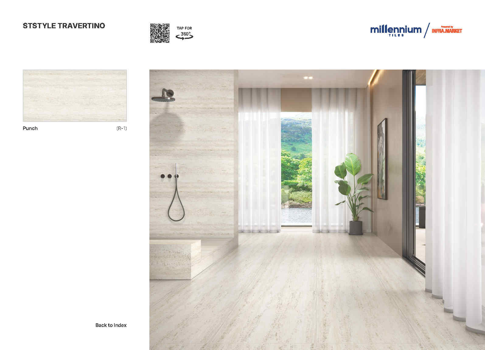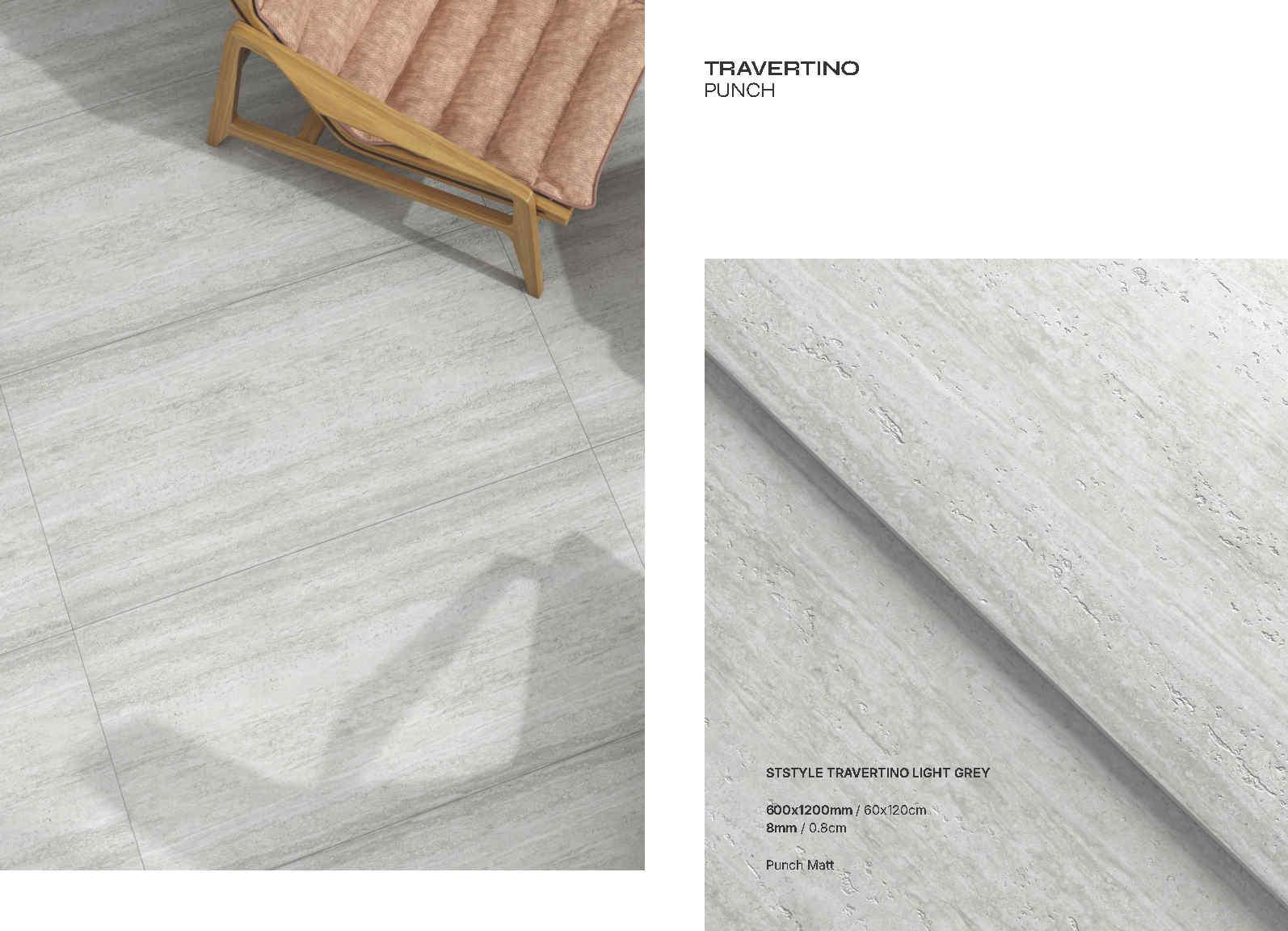 Travertino Punch là bộ sưu tập gạch porcelain khổ 600×1200 mm lấy cảm hứng từ vân đá travertine với các lớp vân ngang tự nhiên, mềm và sang theo kiểu “đá cắt lớp”. Bề mặt Punch Matt cho cảm giác mịn lì, ánh nhìn dịu, đồng thời làm nổi nhẹ chi tiết vân để mảng ốp trông “có chiều sâu” mà vẫn sạch sẽ, tinh gọn.