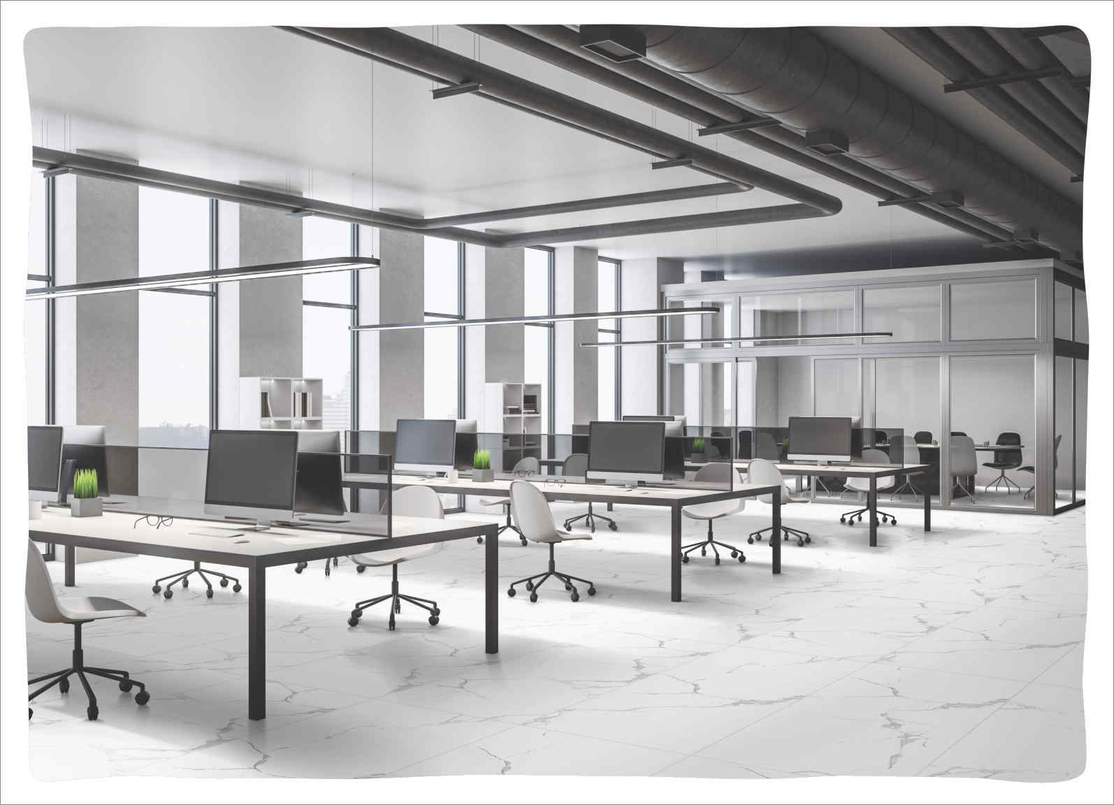 Văn phòng, khu làm việc: Các mã vân marble nhẹ cho nền sáng, chuyên nghiệp; hợp không gian có kính và nội thất tối giản.