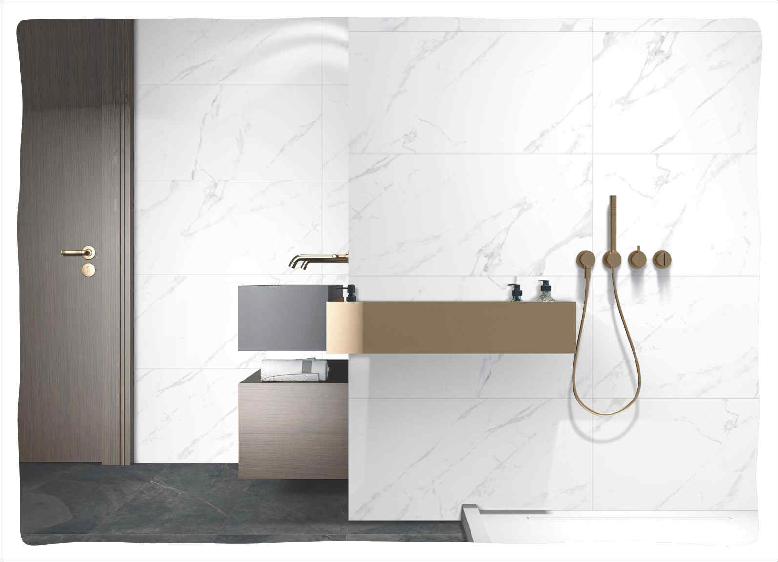 Khổ 600×1200: Tối ưu cho mảng tường lớn và nền rộng; giảm “nát mắt” do ron, tăng cảm giác sang.