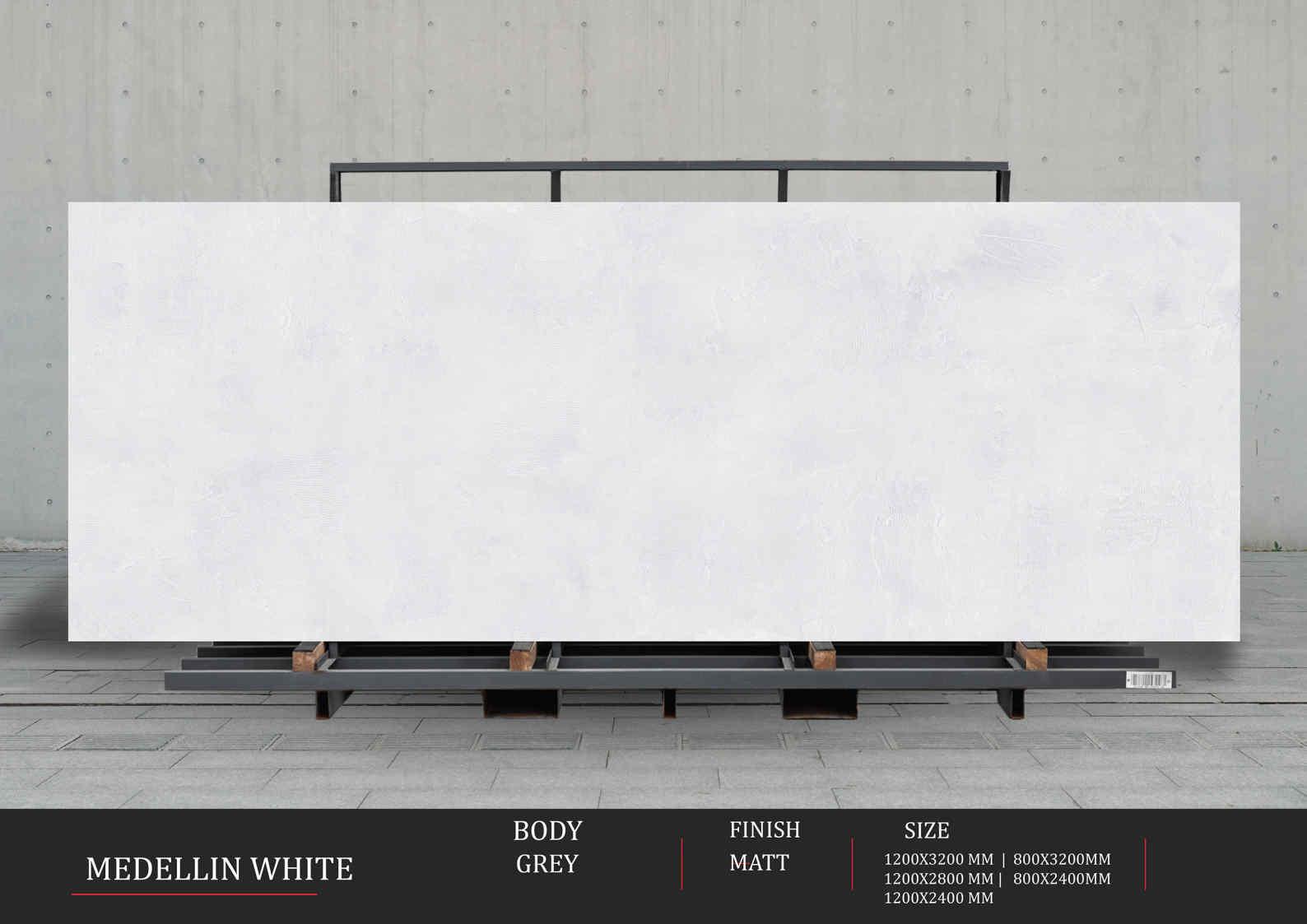 MEDELLIN WHITE – tấm ốp/lát khổ lớn tông trắng sáng mang phong cách tối giản và hiện đại; phù hợp phòng khách, sảnh, vách trang trí, quầy lễ tân, showroom. Dòng sản phẩm sử dụng chất liệu porcelain với bề mặt men Matt, tạo cảm giác tinh tế, nhẹ nhàng và dễ ứng dụng trong nhiều không gian kiến trúc khác nhau. Tông trắng trung tính giúp không gian thoáng đãng, sạch sẽ và bền vững theo thời gian.