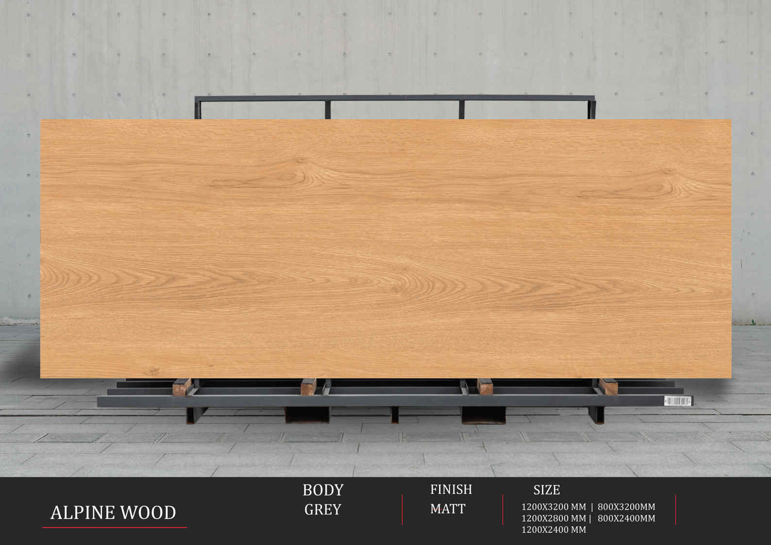 Mẫu ALPINE WOOD bề mặt matt (mờ), họa tiết vân gỗ tự nhiên tông nâu vàng ấm, mang lại cảm giác gần gũi, ấm áp và cân bằng thị giác; phù hợp các không gian theo phong cách modern, Scandinavian, Japandi hoặc contemporary như phòng khách, phòng ngủ, showroom, khu sinh hoạt chung và không gian thương mại cần sự thân thiện. Hiệu ứng vân gỗ trải dài giúp không gian mềm mại, dễ chịu và không lỗi thời.