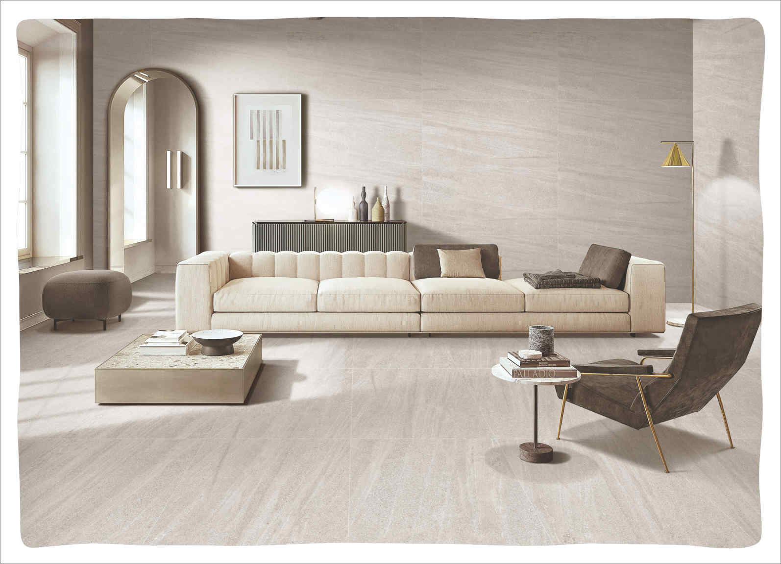 Vân đá tiết chế: Mềm, đều, tạo nền tinh tế để làm nổi đồ nội thất và ánh sáng.