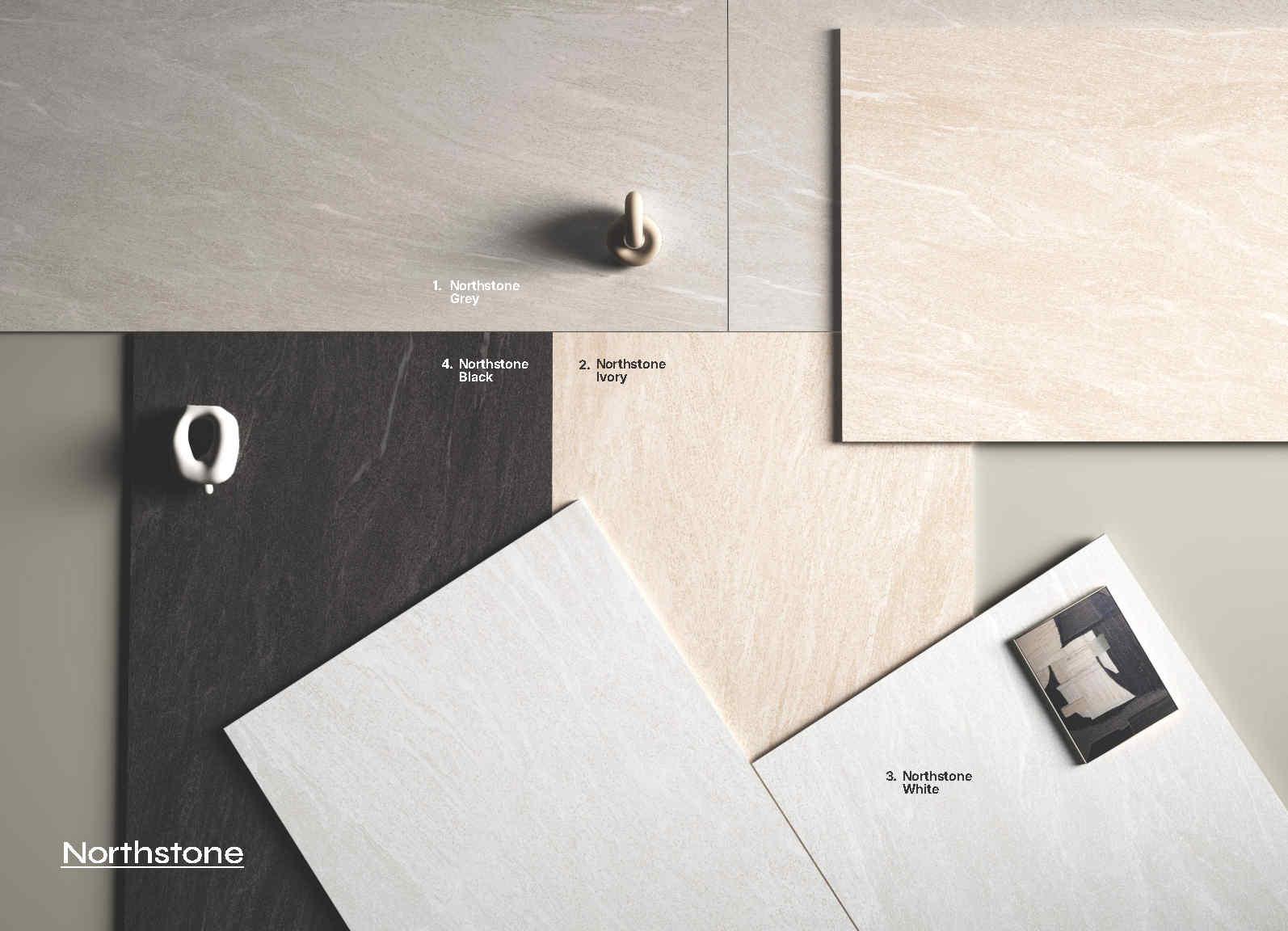 Bảng màu dễ chọn theo mục tiêu không gian: Northstone White cho nền sáng tinh gọn, giúp không gian thoáng và bắt sáng tốt; Northstone Ivory với sắc kem ấm nhẹ, tạo cảm giác dễ chịu, hợp nội thất gỗ và tông ấm; Northstone Grey với màu xám trung tính, cân bằng ánh sáng, hợp nhiều phong cách và vật liệu; Northstone Black tạo chiều sâu và điểm nhấn mạnh, hợp quầy bar, mảng tường nhấn, không gian cá tính.