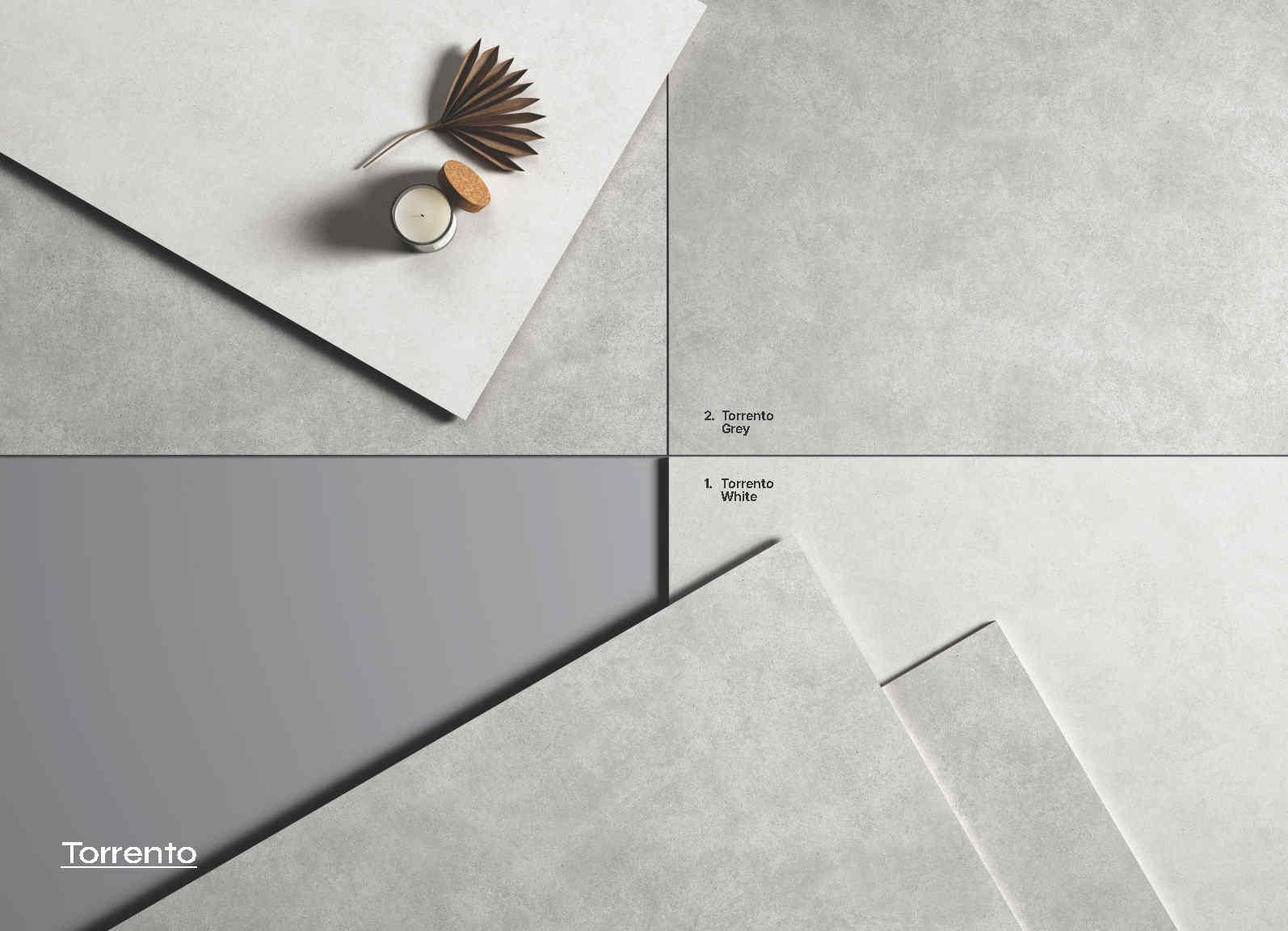 Gợi ý ron ~2 mm: Ưu tiên ron xám rất nhạt cho Torrento White và xám trung tính cho Torrento Grey để giữ hiệu ứng liền mạch, sạch mắt.