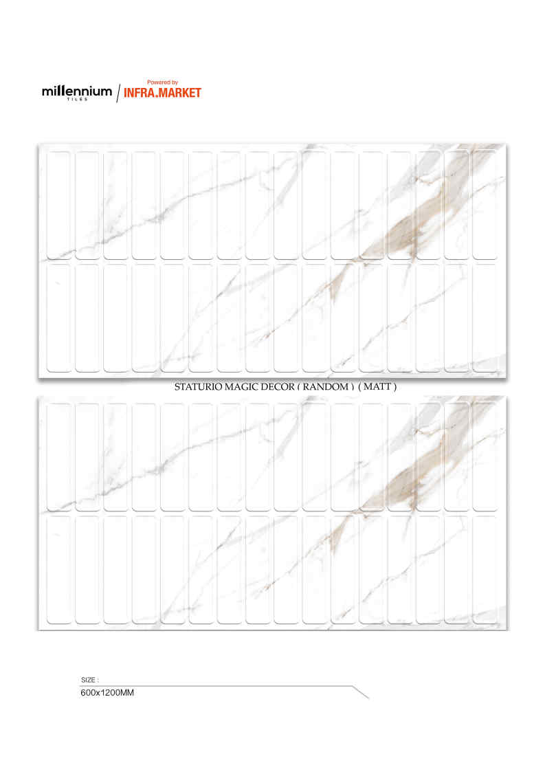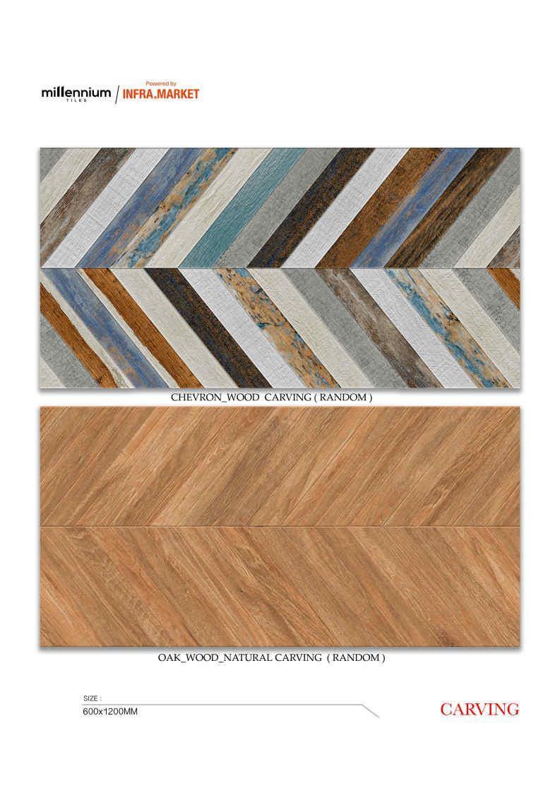 Bộ sưu tập gạch porcelain 600×1200 mm bề mặt men Matt kết hợp hiệu ứng chạm khắc (carving) tinh xảo, tạo lớp nổi – chìm rất nhẹ trên bề mặt, nhìn hiện đại nhưng vẫn giữ được độ sang của vật liệu cao cấp. Bộ này có đủ ngôn ngữ: vân đá, vân xi măng, gỗ xương cá, kẻ sọc décor, pattern trang trí… nên dùng được cho nhà ở, showroom, khách sạn, spa và cả các mảng tường nhấn trong dự án.