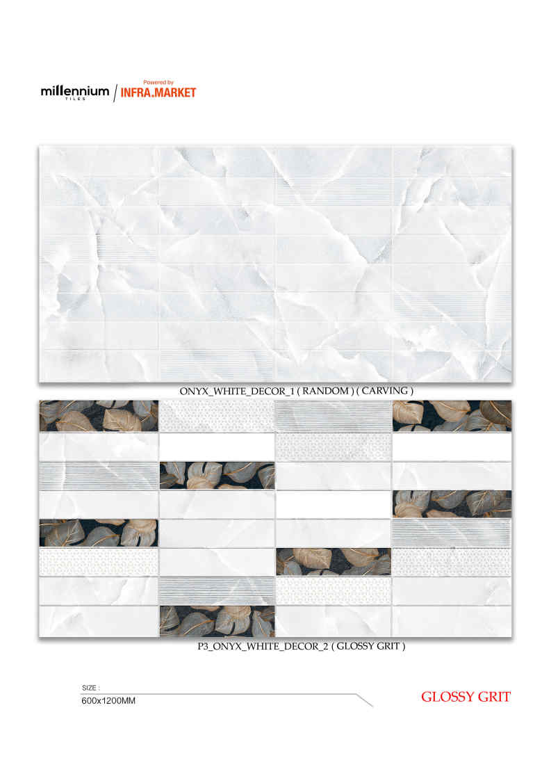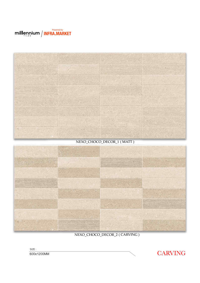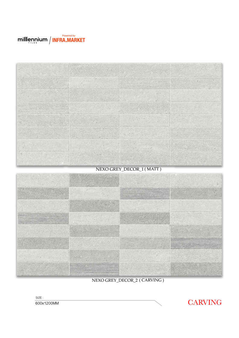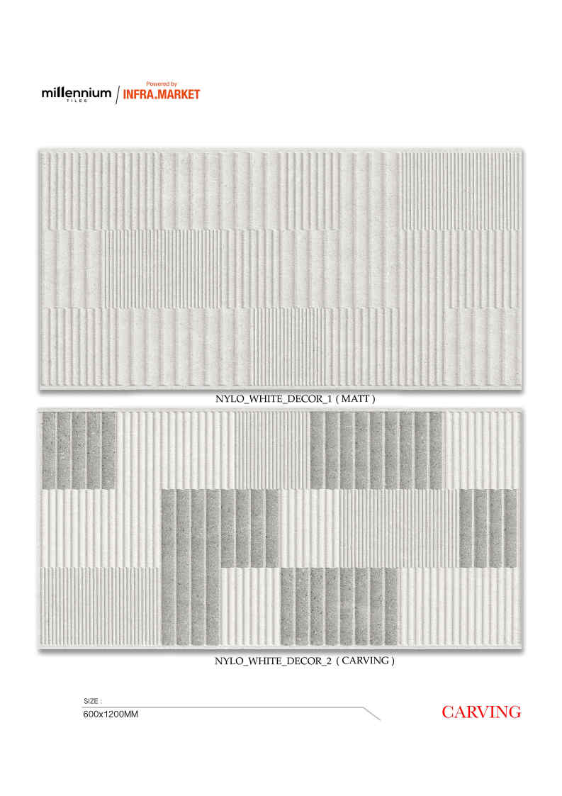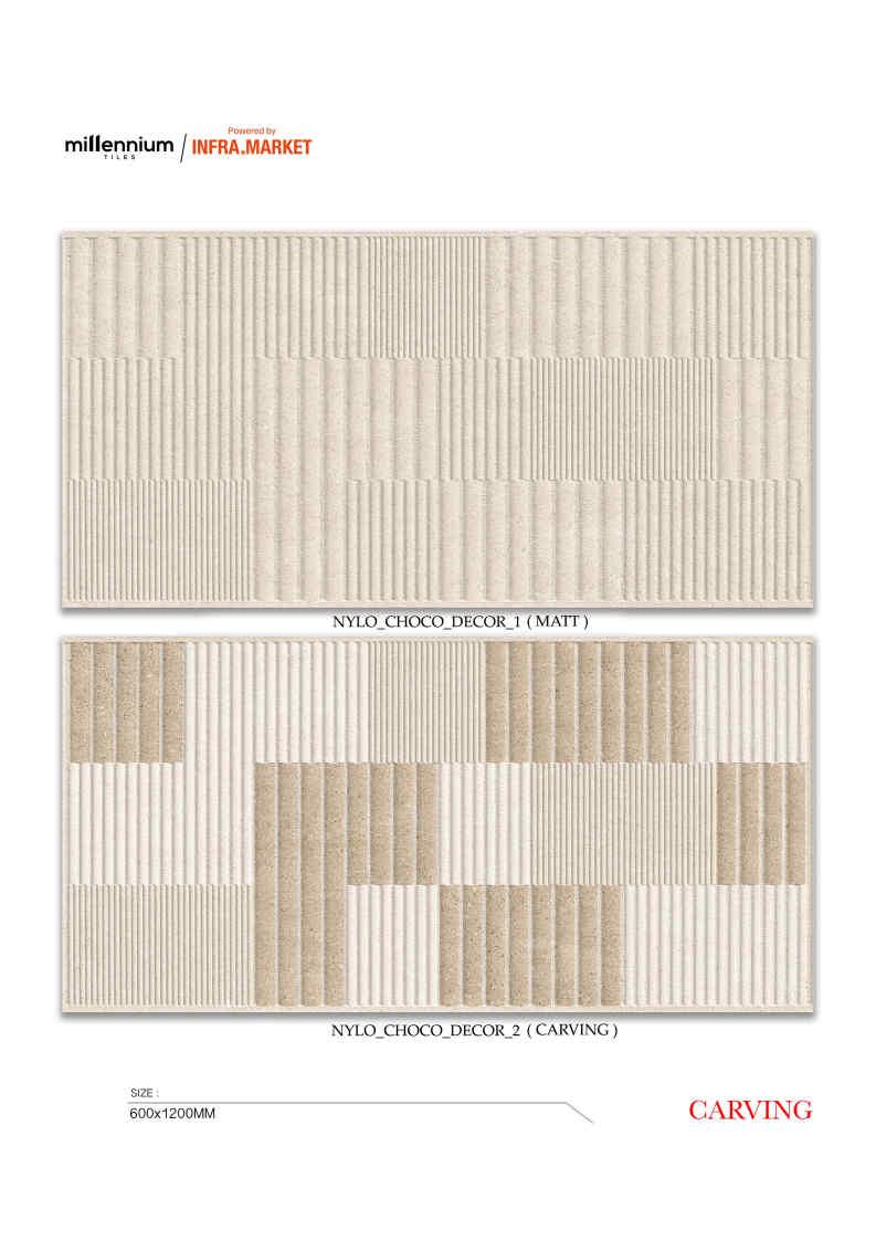 Phối cặp:mẫu trơn + mẫu carving cùng tông để tạo bộ ốp hoàn chỉnh.